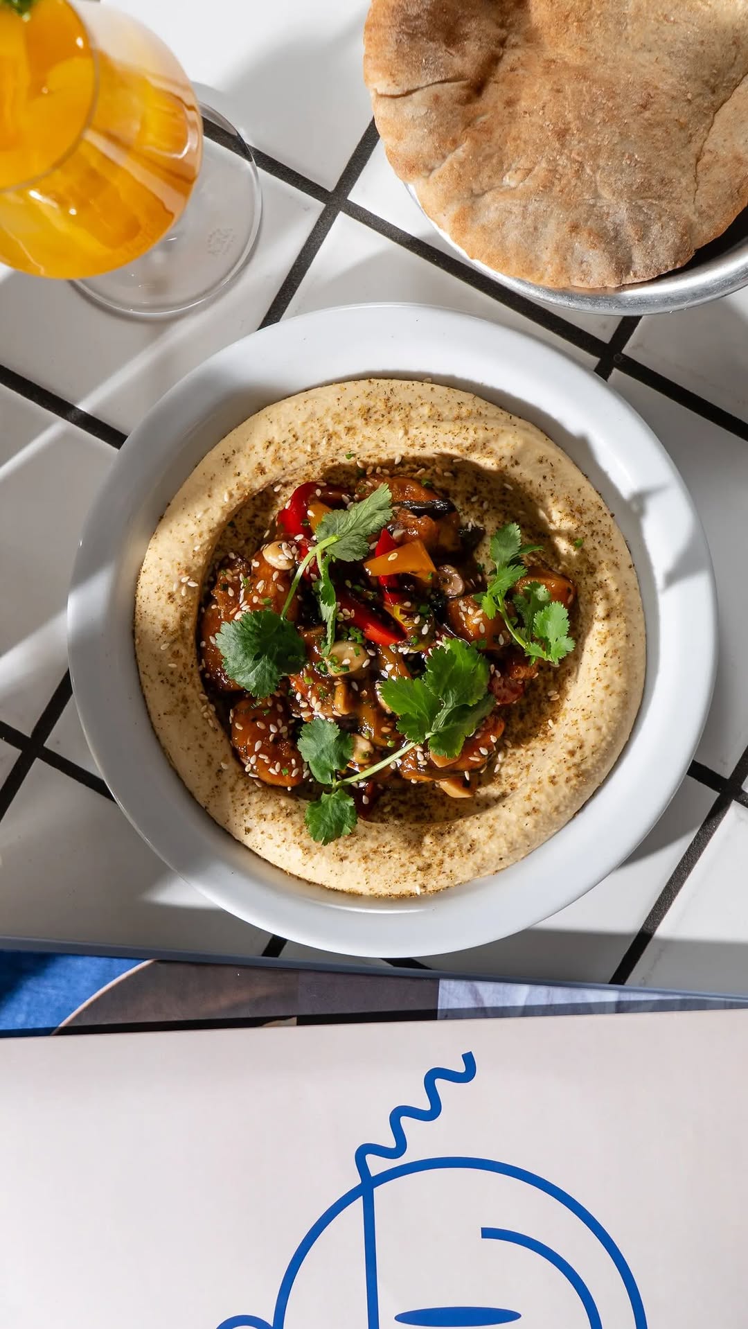 Dizengof99 находится в одном из корпусов нашего ЖК. Очень приятное и атмосферное место. Мы в нем завтракаем и ужинаем, а иногда я пригрожу туда днем, чтобы поработать. Люблю всякие хумусы с начинками, рваным мясом или запеченными карамелизированными томатами. Мне кажется, это очень прикольная штука — израильский фастфуд.