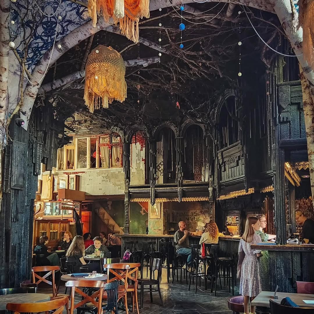 Этот бар мне нравится своим потрясающим интерьером — готика из обожженной древесины. Здесь классная хипстерская атмосфера: макароны по-флотски в эмалированный мисках, пивас — очень душевно.