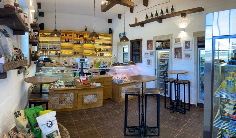«Панинотека» — гастромаркет, маленькая бухта итальянского изобилия с достойным ассортиментом готовой еды, сыров и колбас, а также винотека со стеклянным люком в полу.