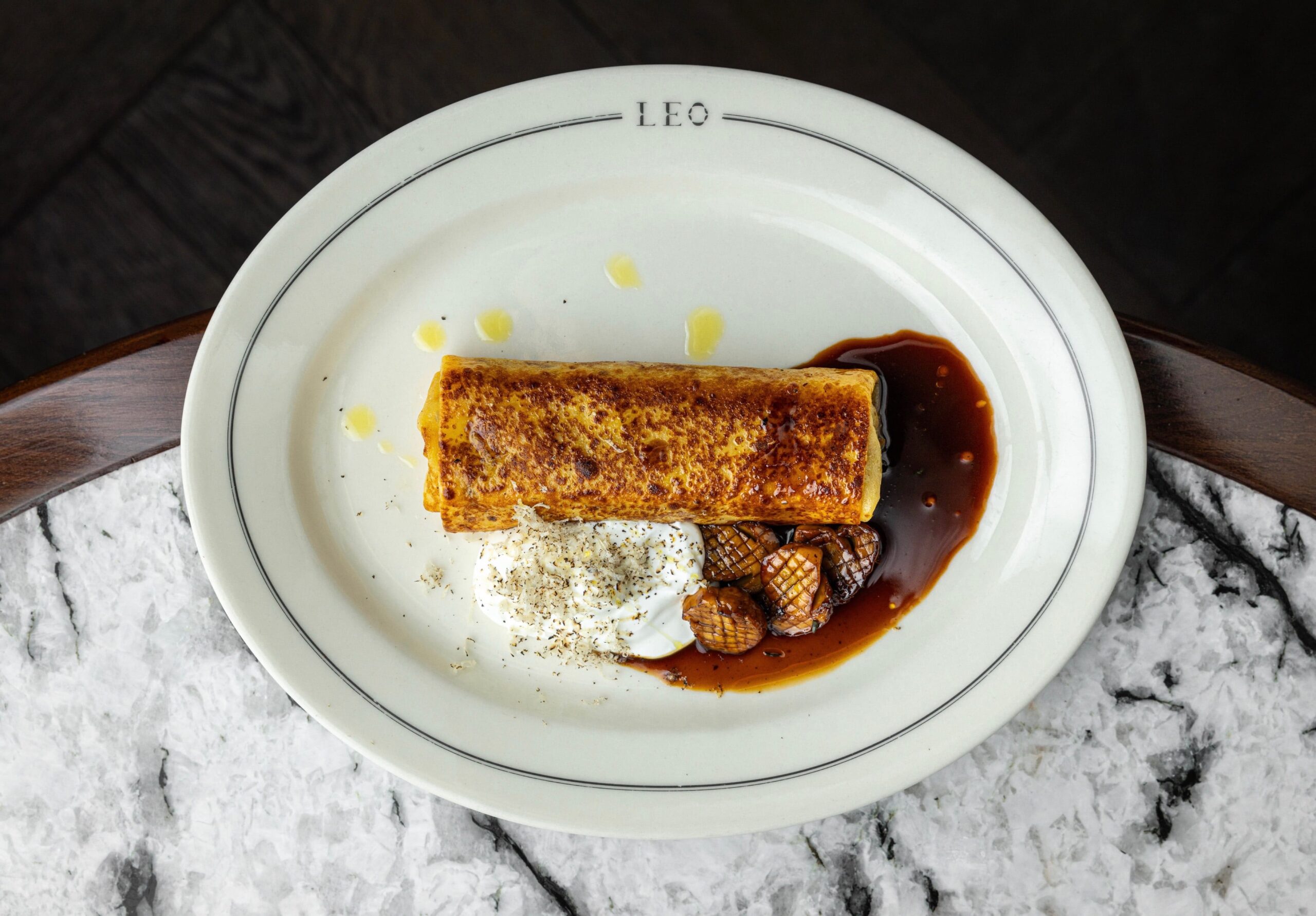 Зайти на блины в Хамовниках можно в LEO. Здесь нашлось место классике: блинам со сметаной, щучьей икрой и даже с черной. Но есть и авторские интерпретации: блин с говядиной Black Angus и трюфелем, вариация с камчатским крабом и шпинатная — со слабосоленым лососем.