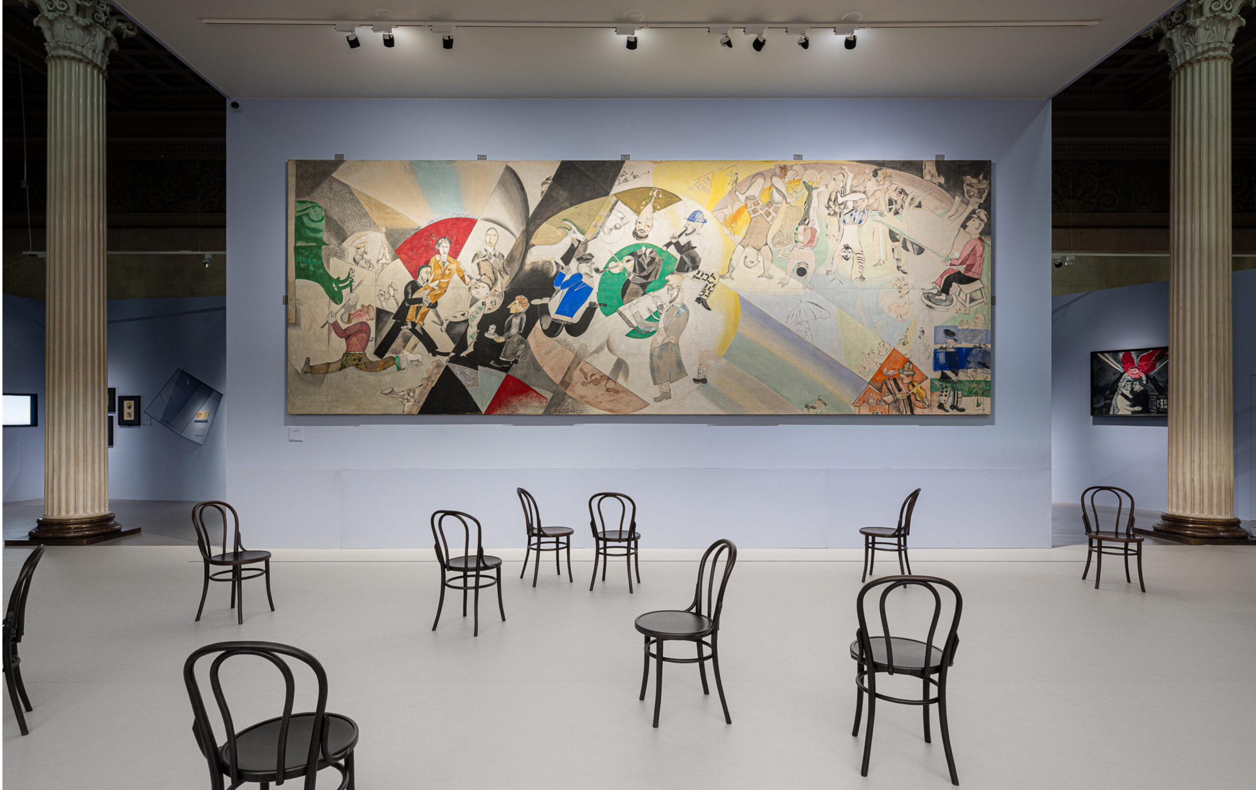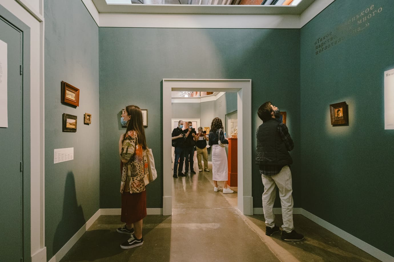 Прямо сейчас в залах музея изобразительных искусств имени А. С. Пушкина выставлены произведения Марка Шагала, созданные им в «русский период» (конец 1900-х — 1922). Среди них есть панно для Еврейского камерного театра, цикл рисунков, посвященных Первой мировой войне, а также иллюстрации к сказкам Дер Нистера и поэме Николая Гоголя «Мертвые души». Многие из работ сопровождаются цитатами из автобиографической книги художника «Моя жизнь».