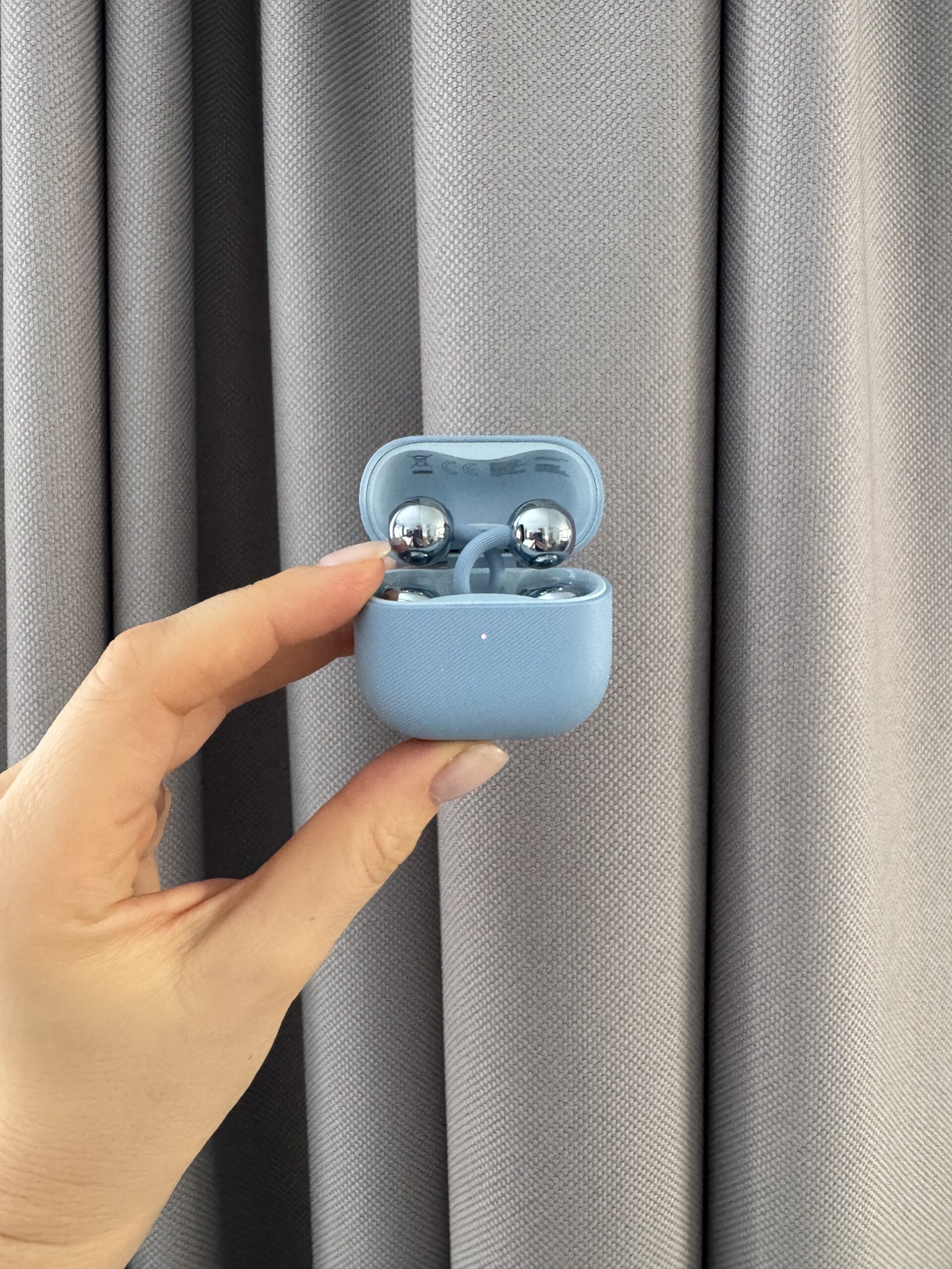 Особенно радует палитра: классические белый и элегантный черный и, безусловно, фаворит сезона — голубой с эффектом классической джинсовой ткани. Это уже не просто наушники, а почти украшение, которое легко вписывается в повседневный стиль.