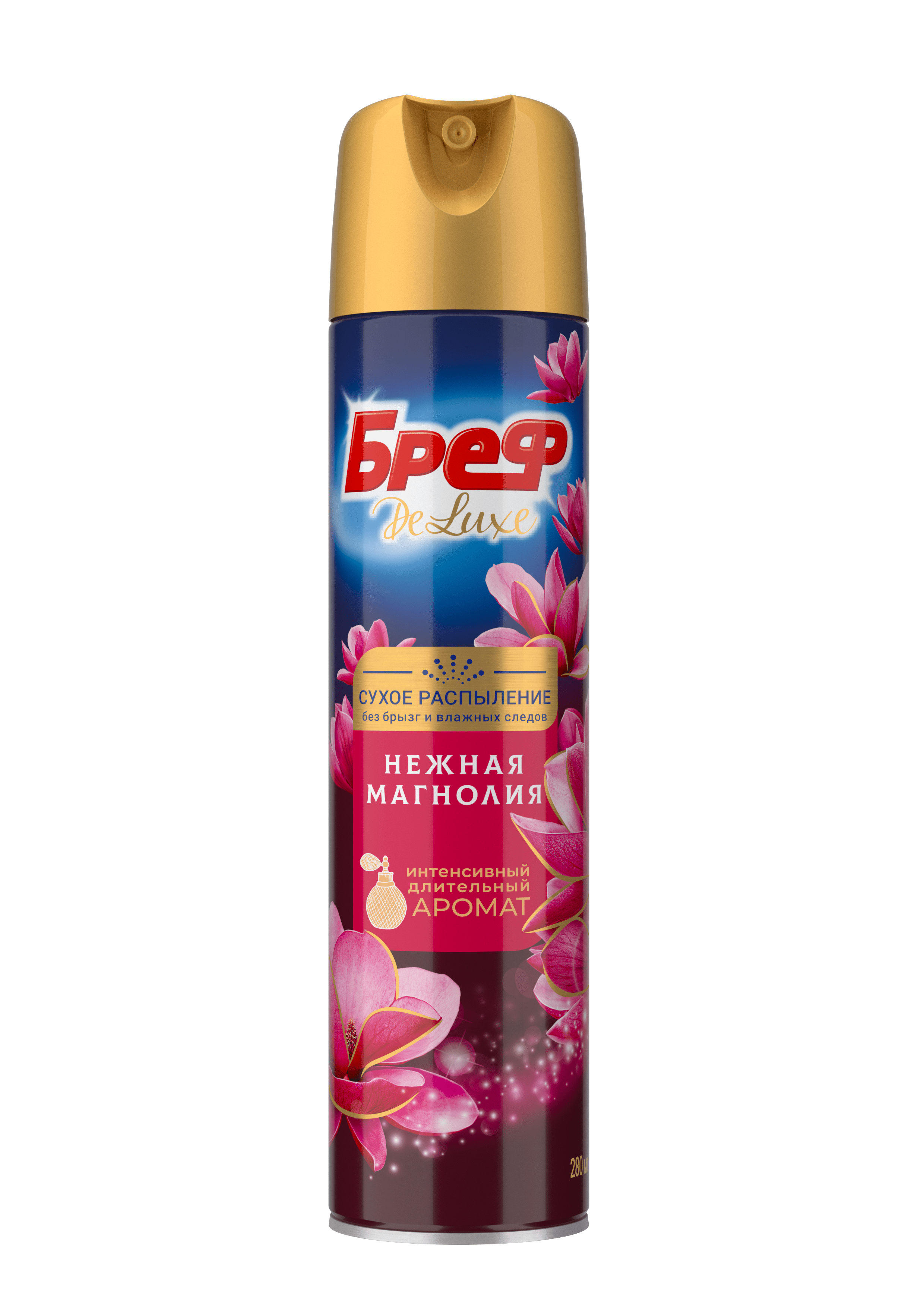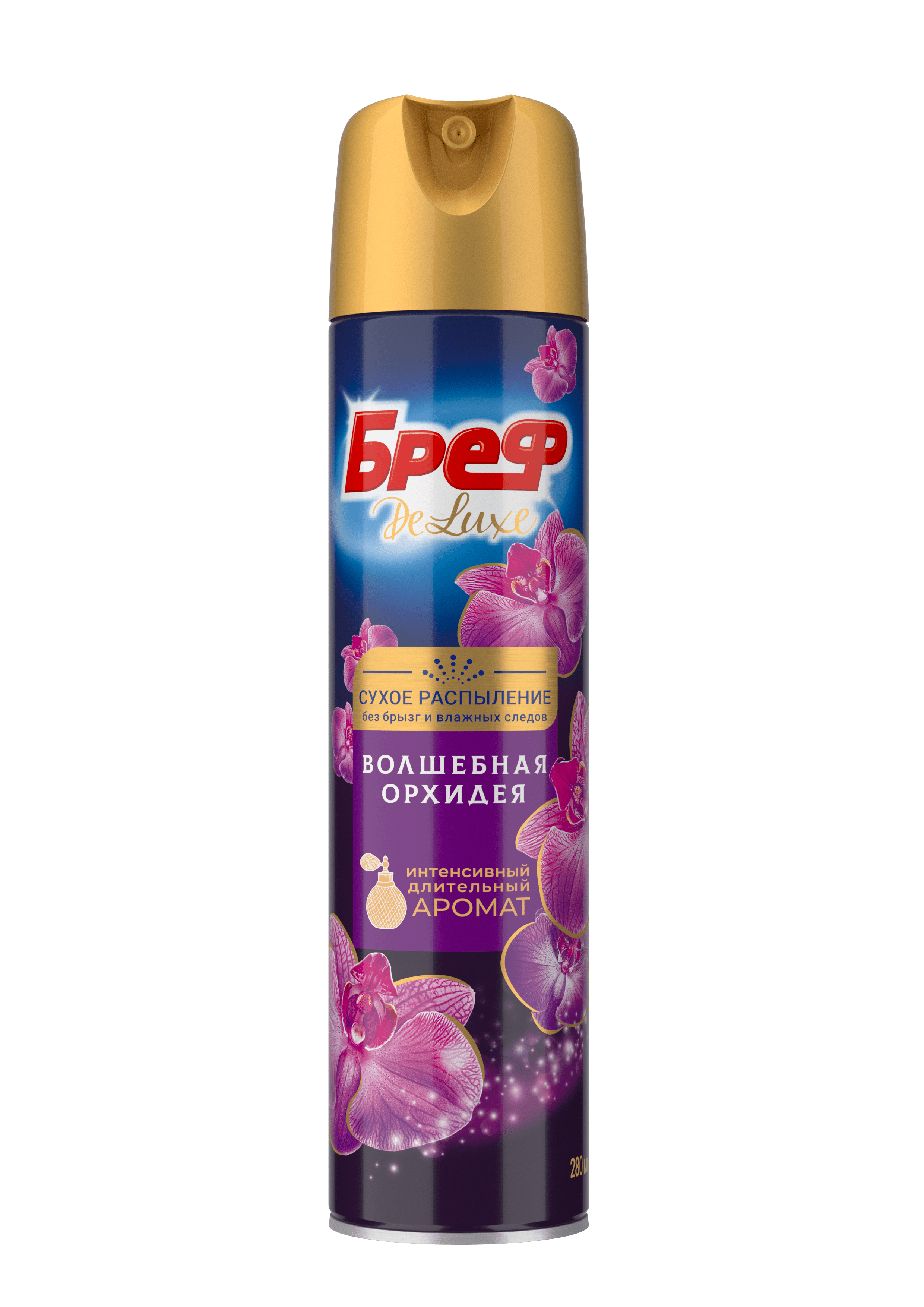 Освежители воздуха Бреф Deluxe наполняют комнату интенсивным и насыщенным ароматом. Они обладают особенной формулой, которая обеспечивает сухое распыление аромата и предотвращает появление влажных следов на поверхностях.