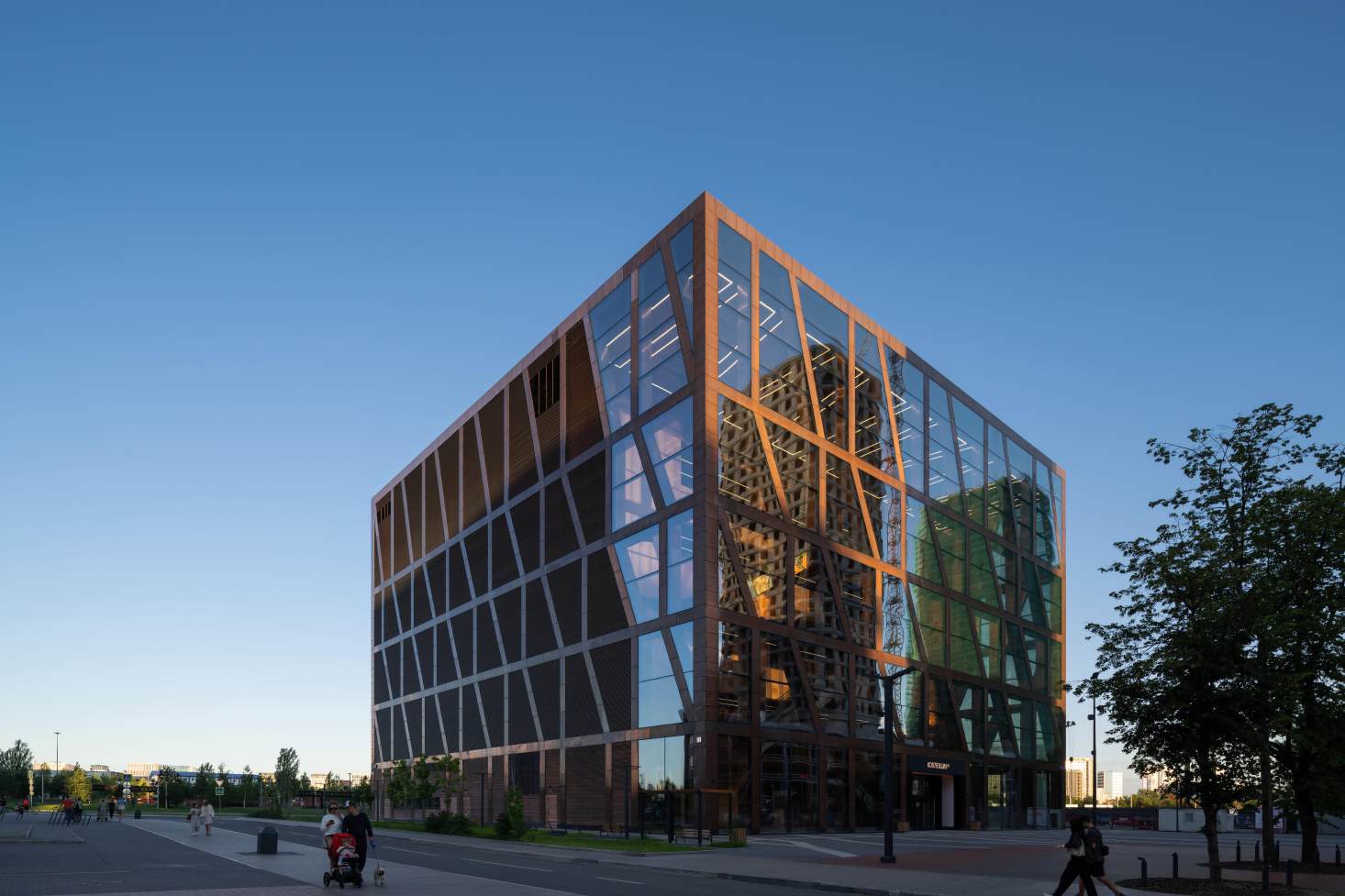 Взамен идеям Хани Рашида архитектор Сергей Чобан вместе с бюро СПиЧ разработал пятиэтажное здание площадью 13,8 тыс. м², основными материалами которого стали медь и стекло — отсылка к ЗИЛу, где они часто использовались на производстве. В будущем все медные фасады начнут темнеть и зеленеть, символизируя течение времени. Представительский лимузин для высшего партийного руководства ЗИЛ-41047 на входе и скульптура Вима Дельвуа «Самосвал» перед входом тоже напоминают о прошлом пространства. Разбавляют интерьер работы ведущих российских стрит-арт-художников, которые можно найти на эскалаторах и лифтах.