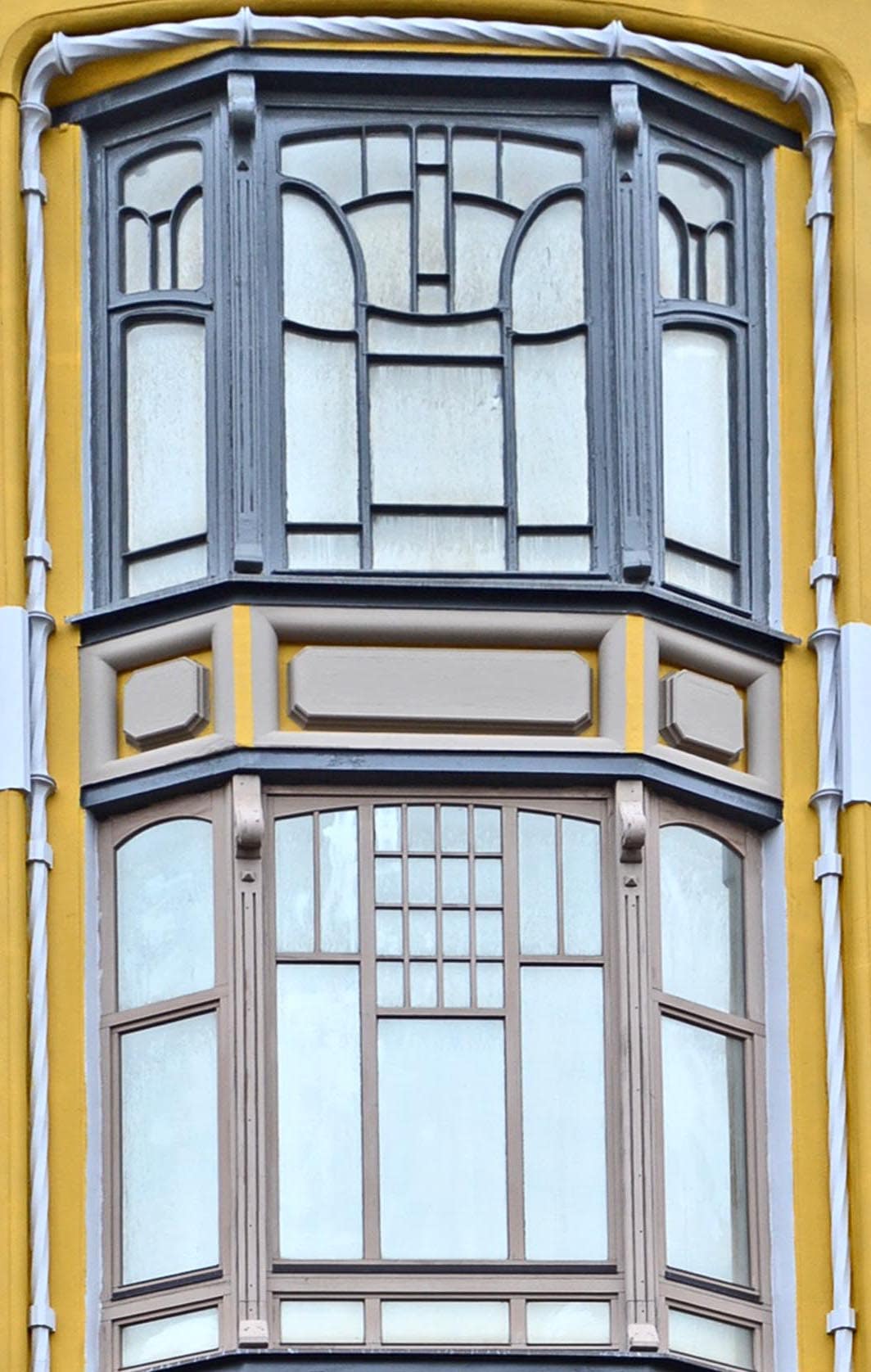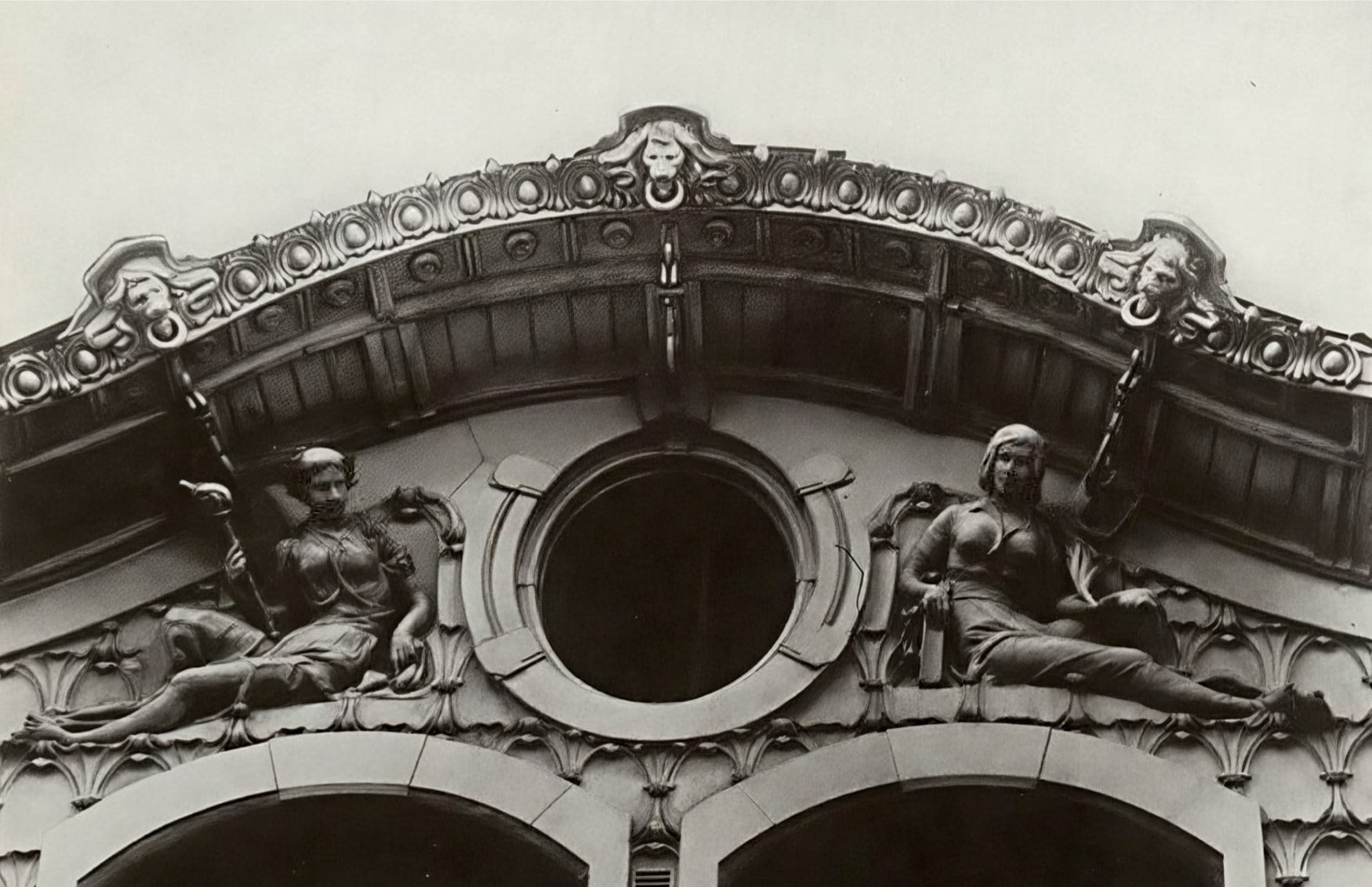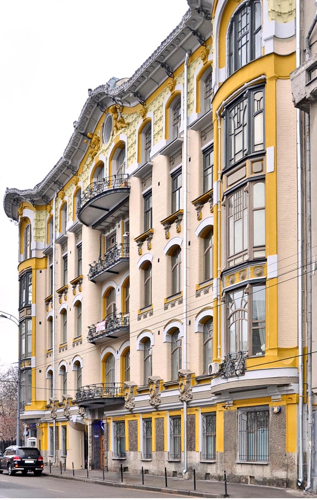 Масштабный шестиэтажный Н-образный комплекс из трех корпусов выделялся не только среди застройки на Пречистенке, но и среди других работ самого архитектора. Визитной карточкой Кекушева были асимметричные фасады, но в этот раз сделал все иначе. По бокам он создал идентичные эркеры, а в центр композиции поместил углубленные лоджии и балконы. Над ними — круглое слуховое окно в обрамлении двух горельефов в виде женских фигур в облегающих одеждах. Та, что с книгой, символизирует знание, а другая с факелом — просвещение.