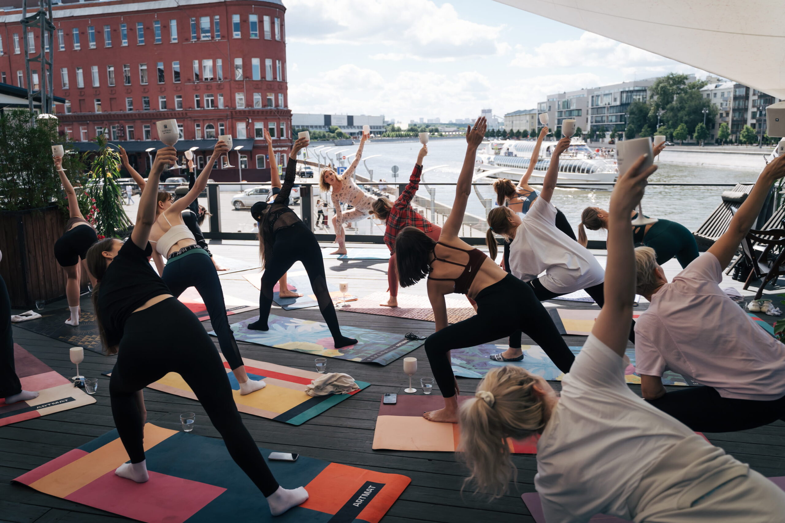 Растяжка с вином — это полноценная тренировка, где кроме ковриков и специальных блоков есть бокал вина и медитация.
