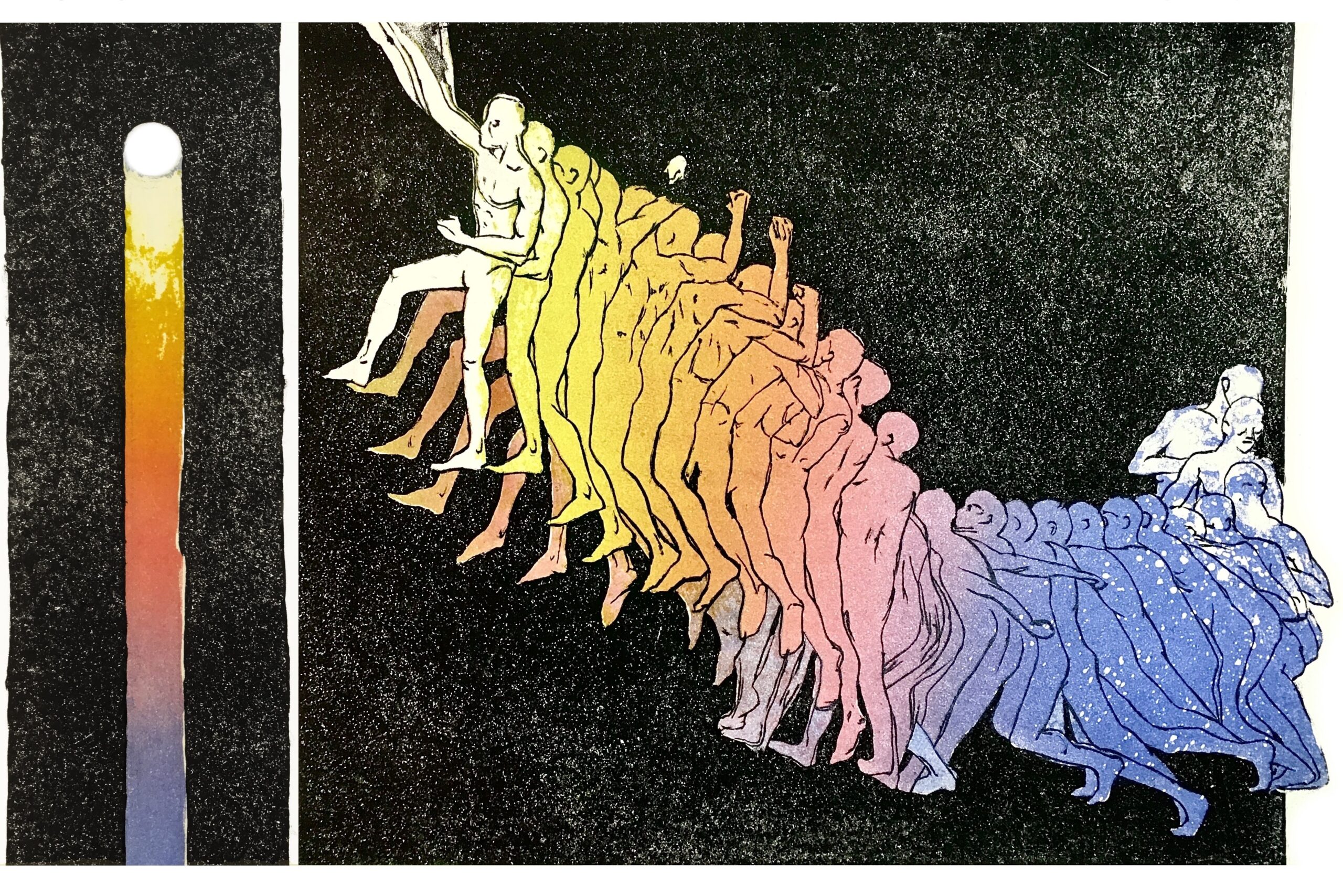 Даниил Толкалин начинал с аналоговой фотографии, но постепенно сместился в сторону ризографии — и теперь сочетает обе техники. Ризография привлекает его смещением цветов, зернистостью, непредсказуемостью отпечатка. Один и тот же кадр в разных прогонах становится другим — иногда ближе к оригиналу, иногда совсем от него уходит. Сейчас Толкалин экспериментирует со стереоколлажами из черновиков, оставшихся после печати.