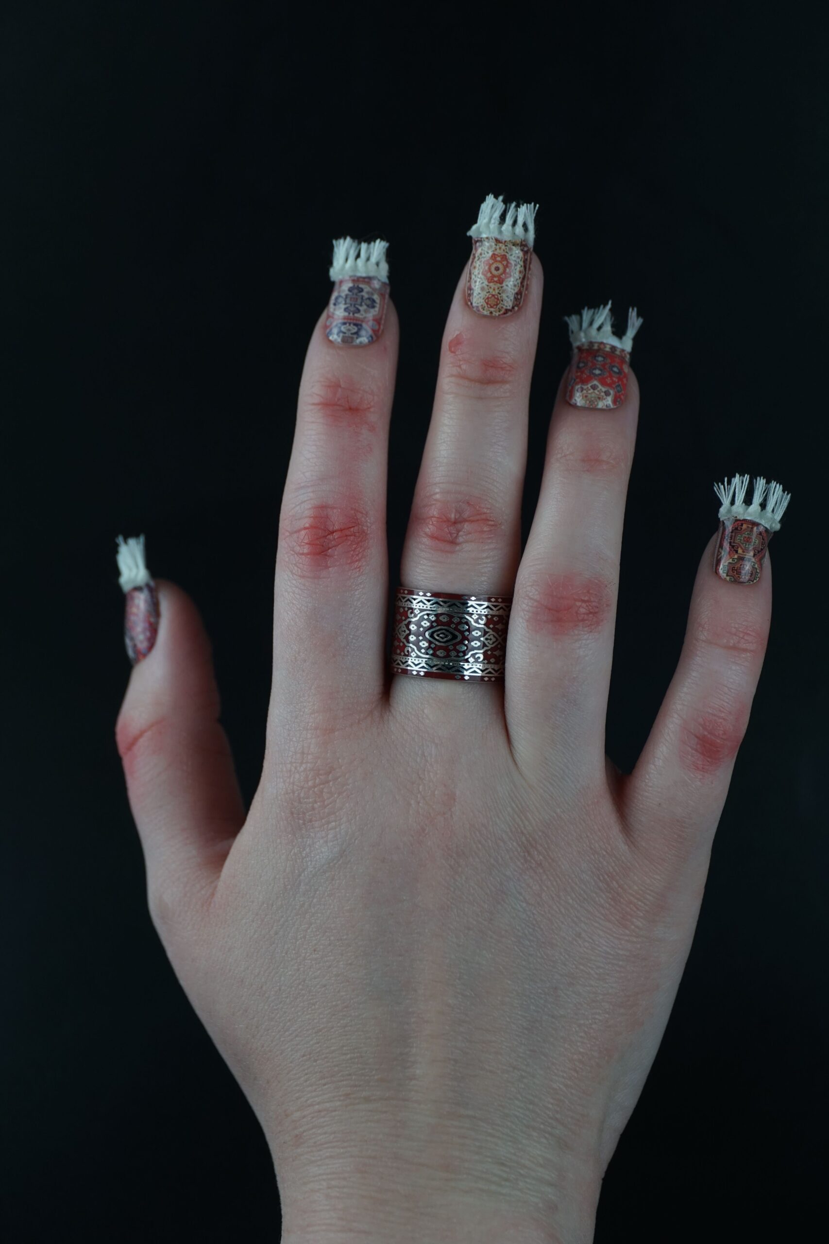 Бренд SYMPTOM и ювелирная андеграунд марка Kate Snap словили ностальгию по советскому детству и выпустили по этому поводу коллаборацию. Коллекция состоит из двух изделий-компаньонов. Кольцо, изготовленное с использованием техники перегородчатой горячей эмали, повторяет сложный узор советского ковра. Подвеска-трубочка — минималистичный свернутый ковер без эмали, с тонким чернением.
