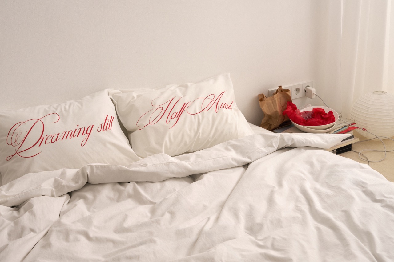 День всех влюбленных прошел, но романтичное настроение осталось. А все благодаря коллаборации бренда «МОРФEUS» с Ульяной Абизяевой. Графика и надписи в фирменном стиле художницы (тонкими круглыми нитками) украсили наволочки из вареного хлопка и натурального шелка. Они — про удовольствие засыпать рядом с любимым человеком. Не только 14 февраля, но и в любой другой день.