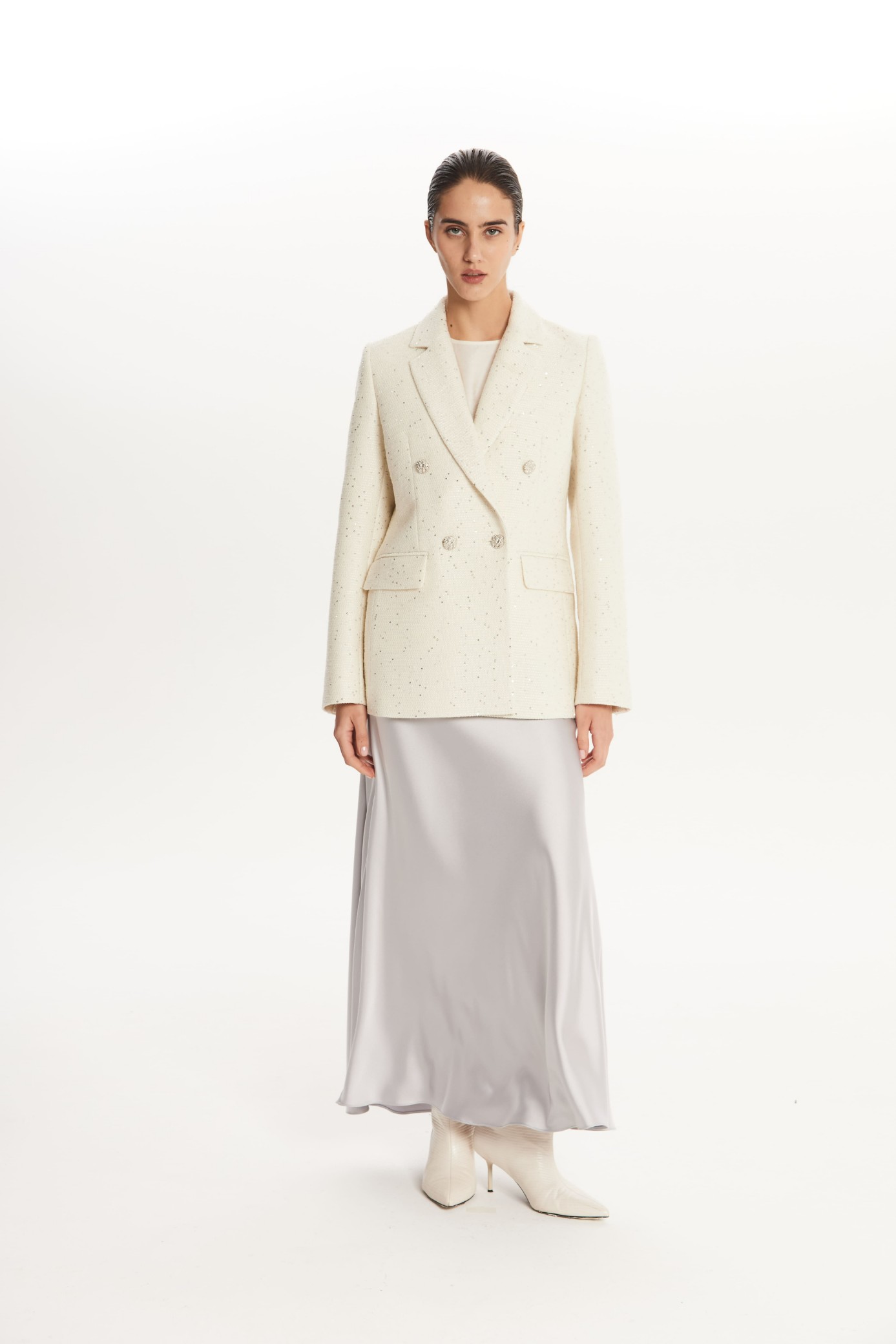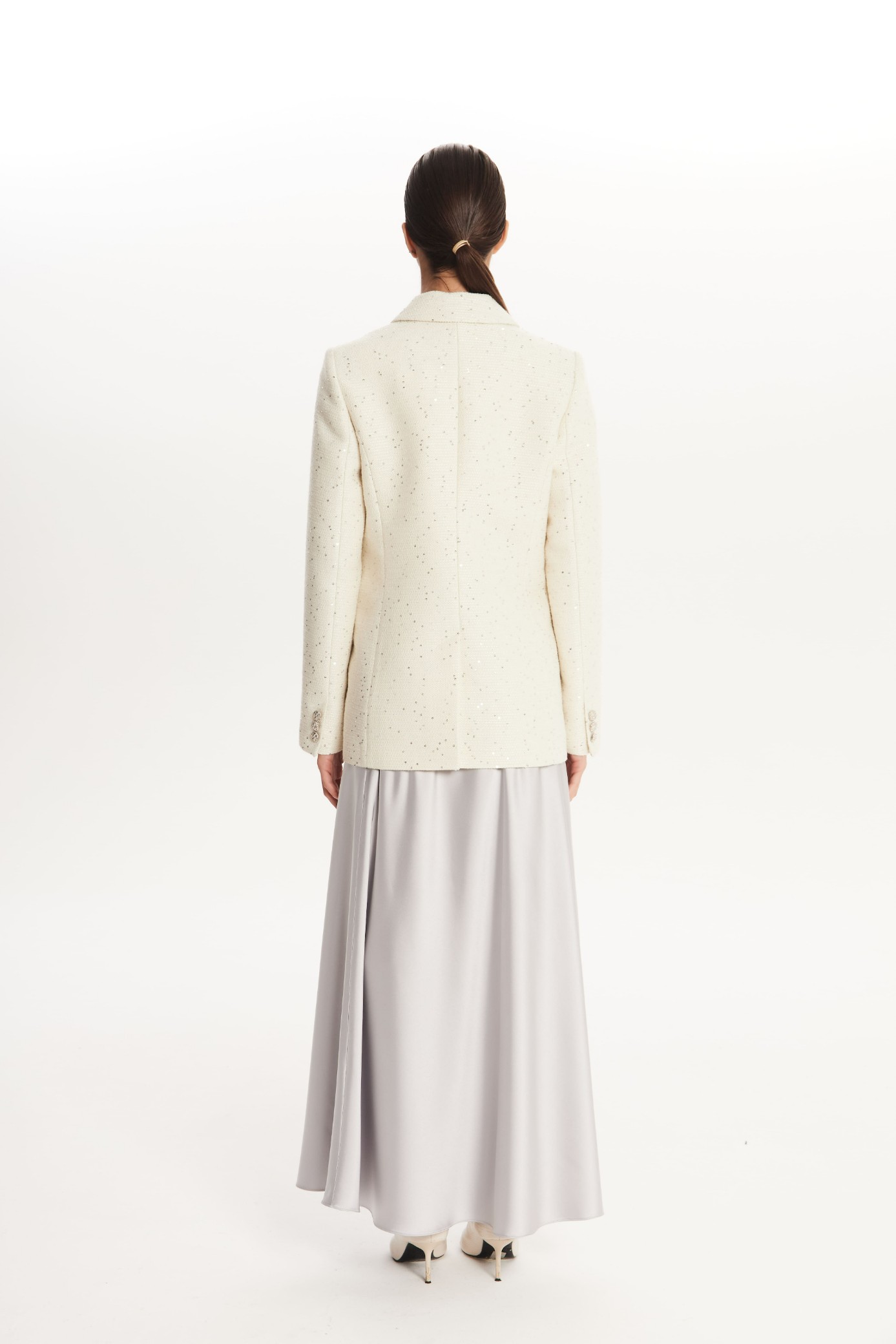 Жакет двубортный с пайетками в молочном цвете, SEVEN LAB, 31 800 руб.