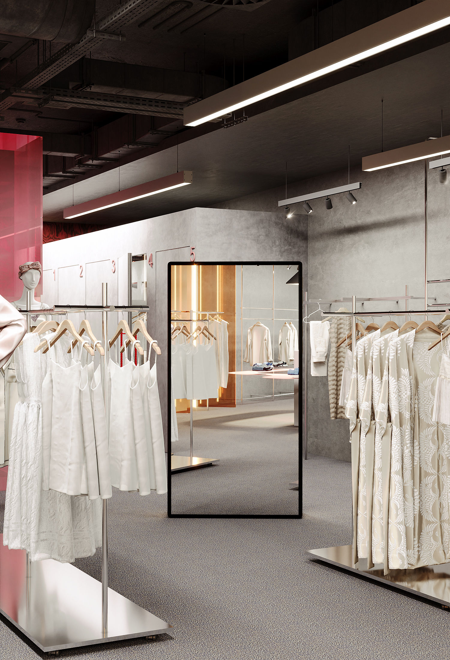 Пространства отражают ключевые принципы бренда: разумный минимализм, тактильность материалов и нейтральная цветовая палитра.