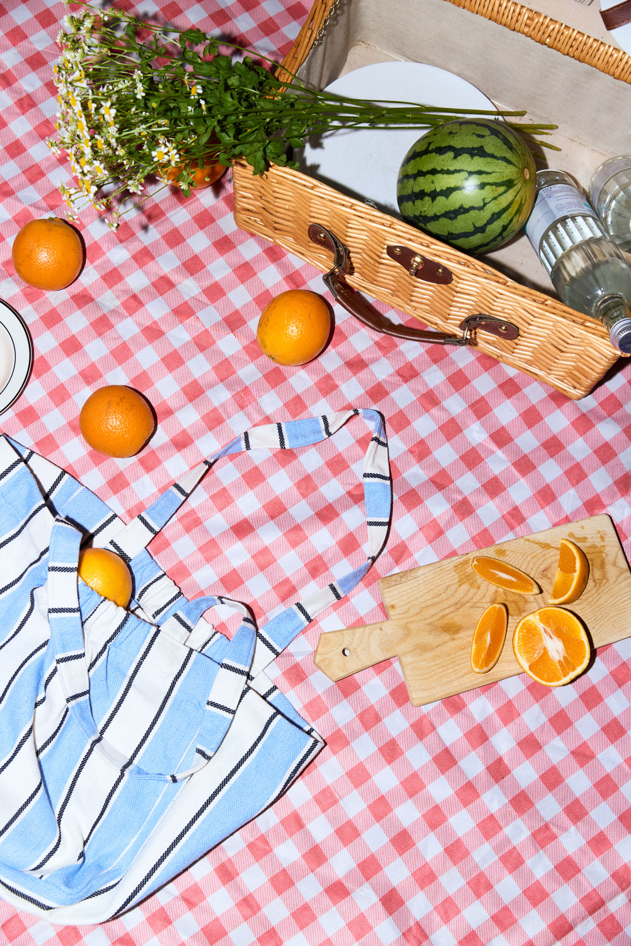 Тему французского шика продолжают майки-тельняшки и футболки свободного силуэта, трикотажный костюм с юбкой макси и сумка-шопер в полоску.