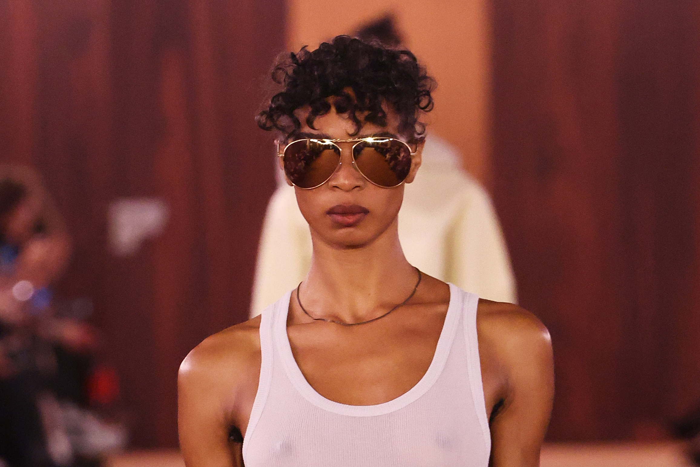 Главный хит сезона — овальные безободковые солнцезащитные очки. Эта форма объединяет сразу две эстетики: ретронастроение 1960-х и футуристичный минимализм начала 2000-х.