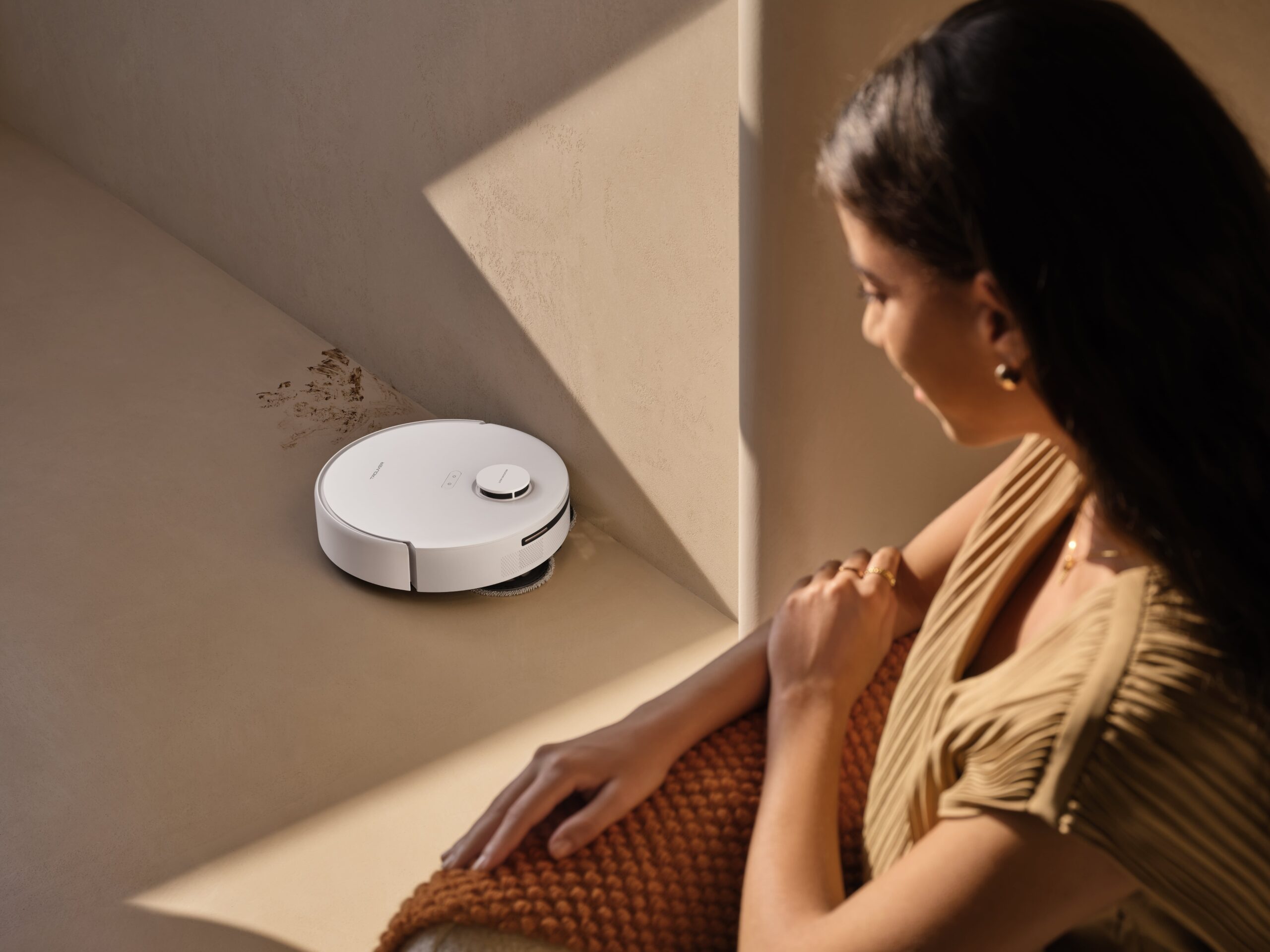 Базовая станция берет на себя простые, но важные задачи: после уборки робот возвращается на базу, где швабры автоматически промываются и сушатся теплым воздухом. Пользователю не нужно разбираться в настройках или что-то запускать вручную — все происходит само по себе.