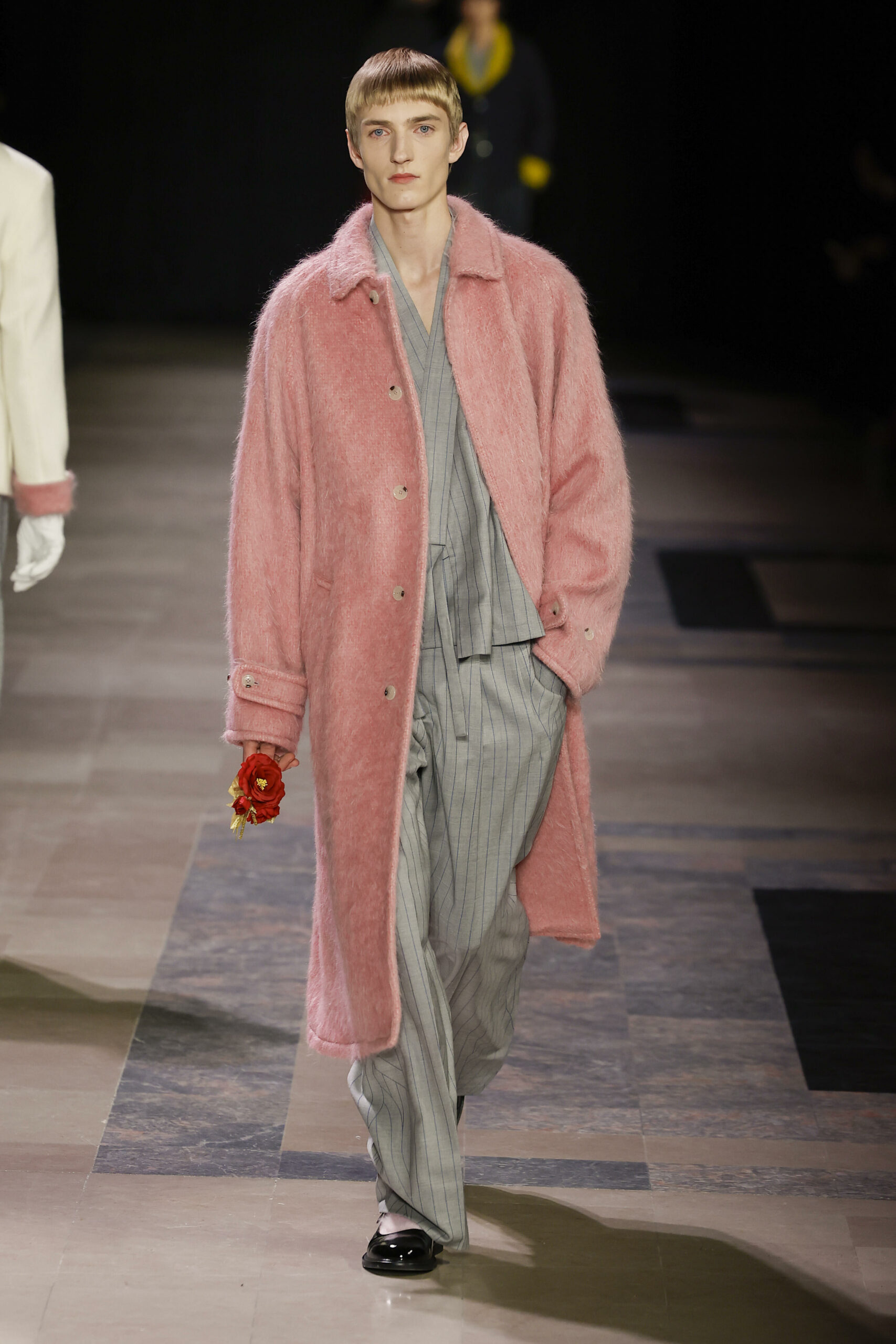 Пастельно-розовый — не самый очевидный оттенок в мужском гардеробе. Но на последних показах Kenzo, Louis Vuitton и Dior дизайнеры представили множество пушистых пальто, стеганых свитеров и блейзеров этого цвета. Словом — долой гендерные fashion-стереотипы