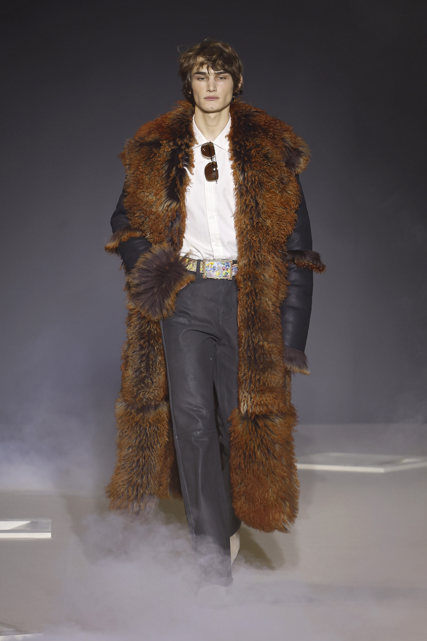 Представьте себе тренд mob wife — роскошество вроде того, что показывали в «Клане Сопрано», — только в мужской интерпретации. Сегодня дизайнеры предлагают джентльменам укутываться в огромные шубы из искусственного меха. Кстати, парочку классных моделей мы видели у этичного питерского бренда Only Me.