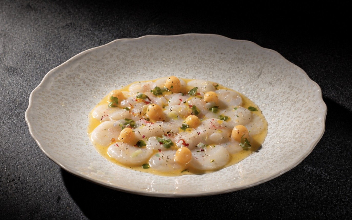 Карпаччо из гребешка с дыней и дынным соусом