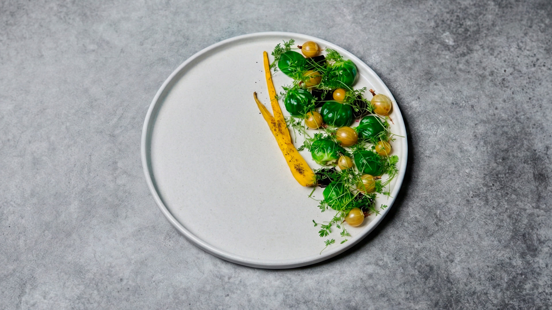 Шеф-повар Роман Чистов придумал винегрет, который скорее напоминает гастрономическую инсталляцию. Начинку из печеного картофеля, квашеной капусты и зеленого горошка с ароматным маслом заворачивают в бланшированные листья брюссельской капусты. Кроме этого на тарелке оказываются маринованный крыжовник, желе из ферментированного свекольного фреша и печеная цветная морковь.