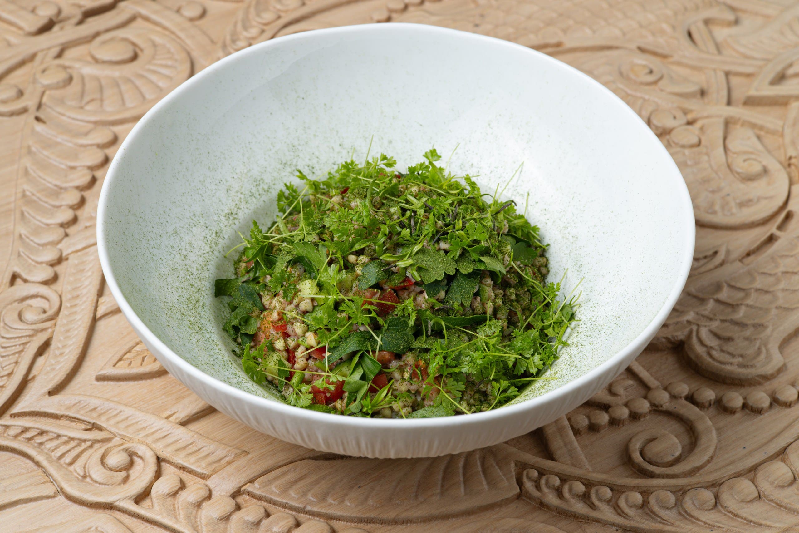 В ресторане Игоря Гришечкина постное меню построено на идее простоты без компромиссов. Например, салат из зеленой гречки с овощами — здесь нет ощущения замены привычных продуктов. Наоборот, все выглядит самостоятельной и законченной гастрономической историей, куда нет необходимости добавлять мясо или какие-то еще ингредиенты животного происхождения.