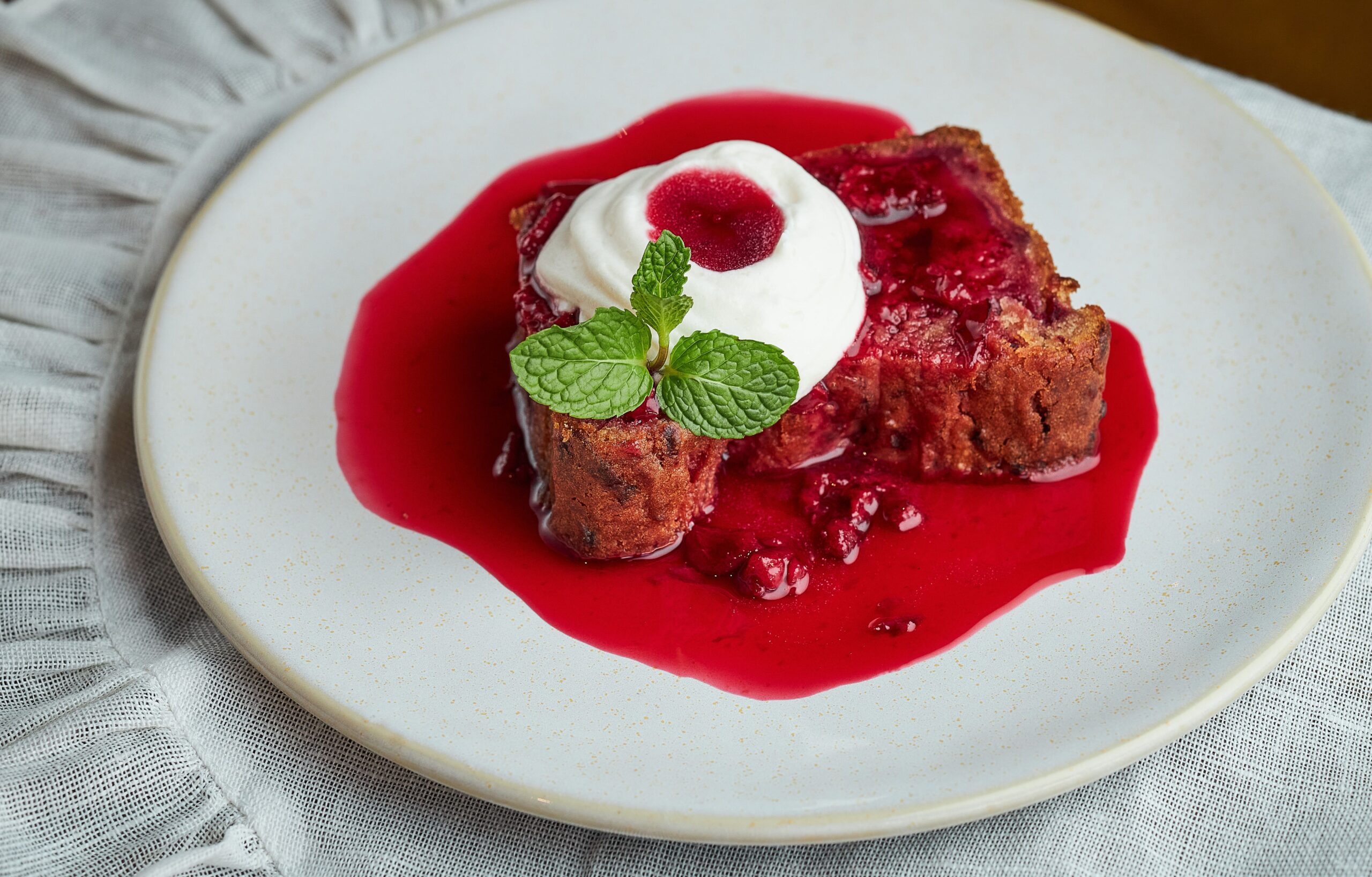 В меню появился десерт, который легко может переубедить в том, что постное — всегда невкусное, даже убежденных скептиков. Вишнево-свекольный кекс подают с насыщенным вишневым соусом и растительным ванильным пломбиром. Сочетание сладости, легкой кислинки и глубокого свекольного вкуса превращает десерт в необыкновенный эксперимент.