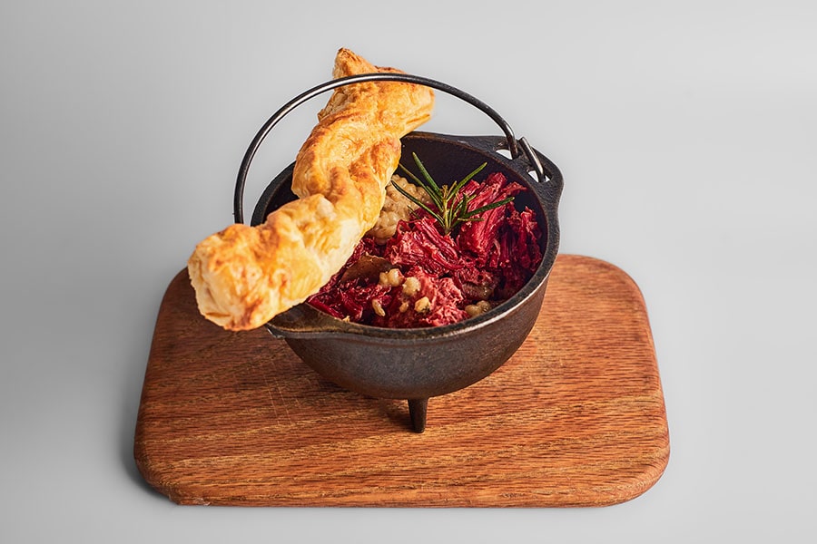 «Шинок» сосредоточил внимание на национальном романтизме. Первый сет вдохновлён органичной архитектурой Антонио Гауди – её текучестью, природными формами и яркой средиземноморской палитрой. Волны, листья, солнечная мозаика и морской бриз превращаются в гастрономическую фантазию. Второй сет посвящён архитектурной мысли Алексея Щусева: здесь и древнерусские мотивы, и сказочные образы, и основательность, где традиции, сила материала и сдержанность складываются в цельный образ.