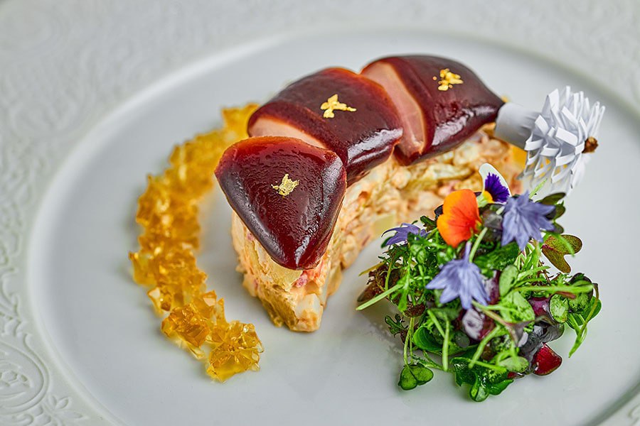 «Шануар» представит сеты, созданные по мотивам творческой биографии Эктора Гимара и Фёдора Шехтеля. Их проекты ‒ это ода модерну, где природа выступает как главный источник вдохновения. Отсюда и обилие естественных, волнообразных и плавных линий как в архитектуре, так и в блюдах. Вкус так же важно было сохранить натуральным и лёгким, но проиллюстрировать его ярко и необычно. Так на тарелках появились улитки, дополненные маршмеллоу из томатов и спиралями из огуречного геля, а также треска, покрытая вуалью.