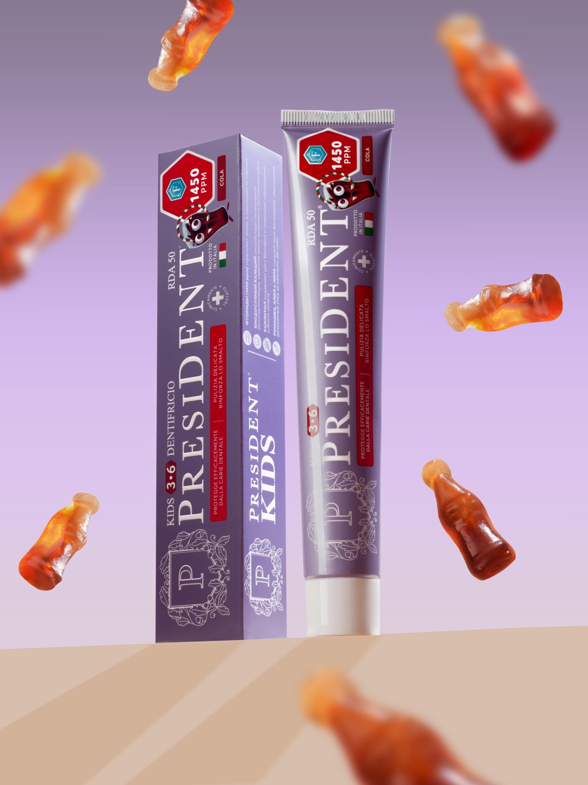 Зубная паста детская со фтором, вкус «Кола», от 3 до 6 лет, PRESIDENT, 817 руб.