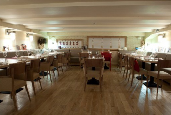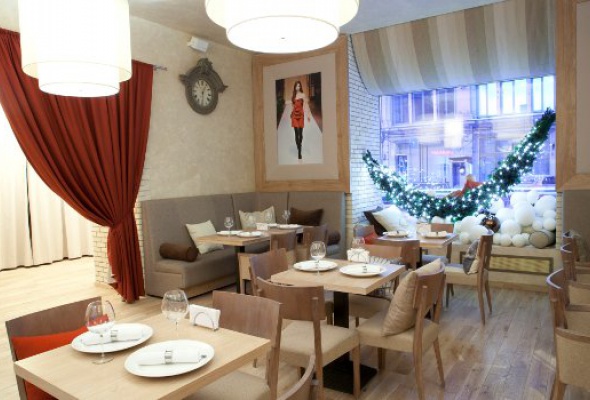 Шеф-повар — Тунин Сергей Борисович. С 12 до 16 часов по будням — скидка на все меню 20%. Завтраки с 8 до 10 утра.