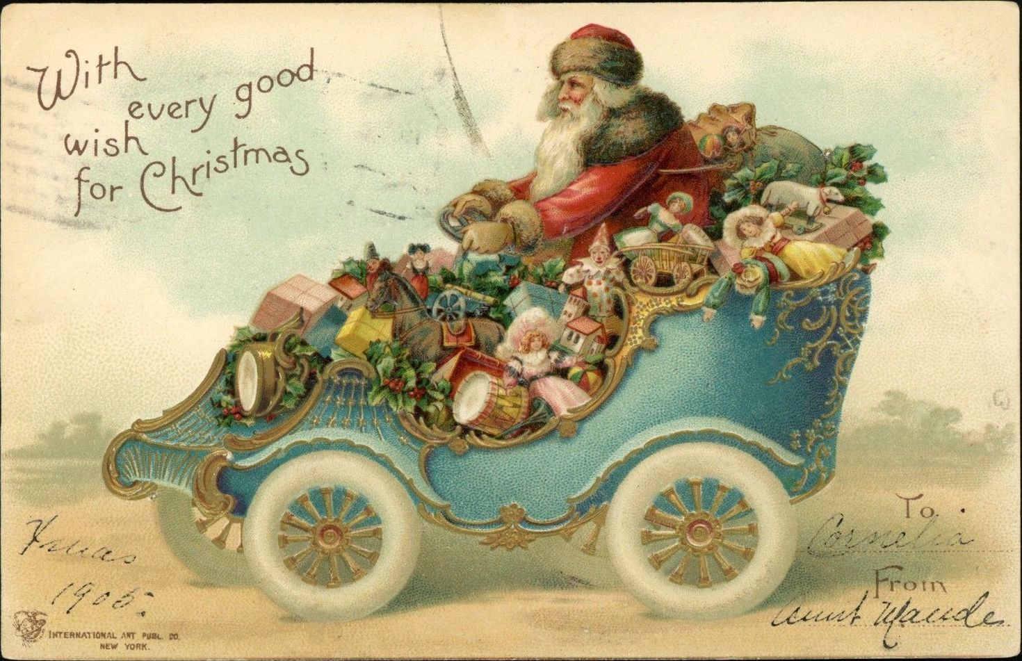 Этот сюжет — один из самых популярных на рождественских открытках. Неудивительно: Рождество — самый волшебный праздник в году, когда абсолютно каждый может ожидать чудес и благодати. На старинных рождественских открытках детям снятся волшебные сны, они видят из окон детской, как Святой Николас (он же – см. пункт ниже) на своей колеснице, груженой подарками, мчится по небу, они восторгаются подарками, которые именно для них принес и положил под елку Святой Николас. На некоторых рождественских европейских открытках явно прослеживается мысль: чудо придет к тебе, дитя, если ты будешь хорошо себя вести.