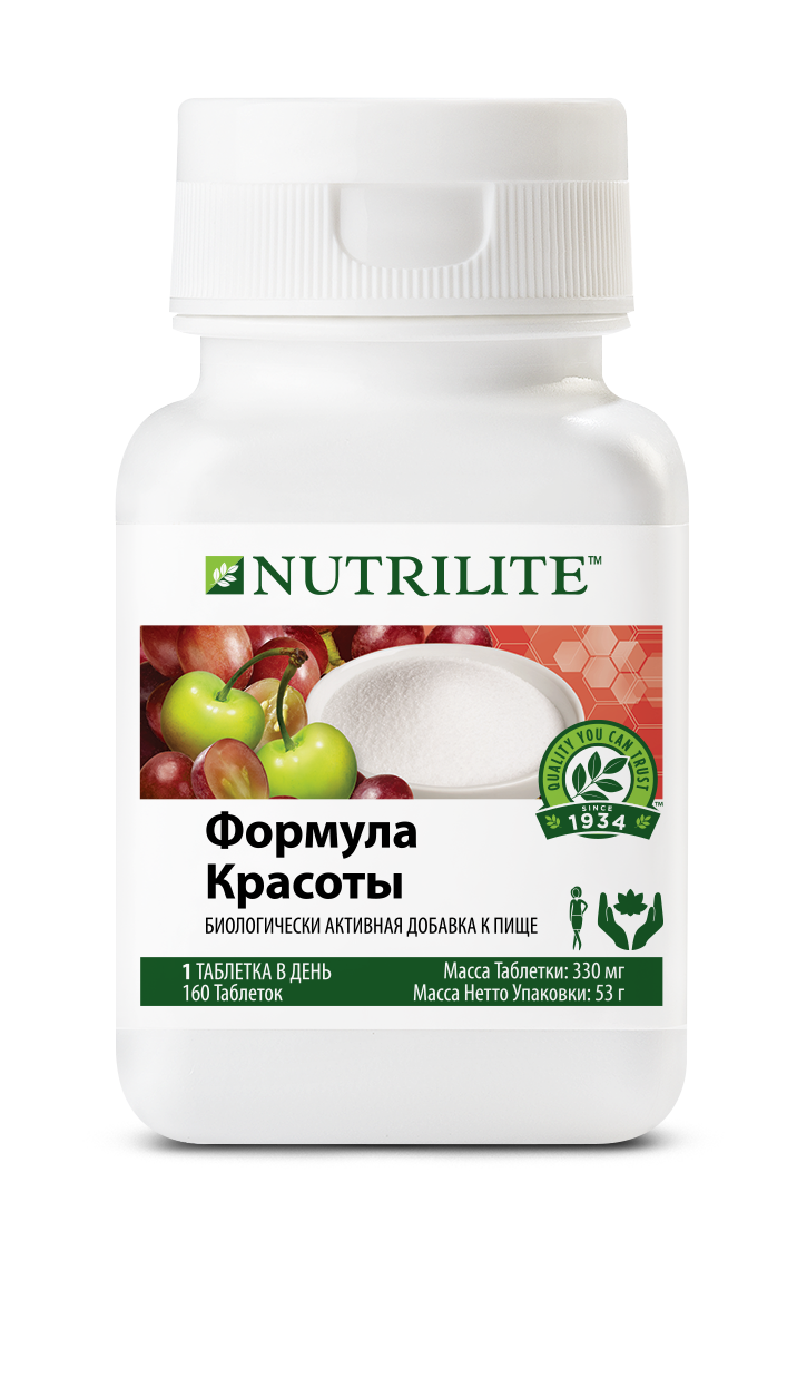 Тем, чей рацион беден овощами и фруктами, идеально подойдет NUTRILITE™ Формула Красоты*. В состав этой биологически активной добавки входит витамин С — мощнейший природный антиоксидант, защищающий кожу от негативного воздействия ультрафиолетовых лучей и свободных радикалов. Биотин (витамин В7) дает коже возможность поддерживать оптимальный уровень увлажненности. Всего 1 таблетка в день поможет раскрыть естественную красоту вашей кожи!