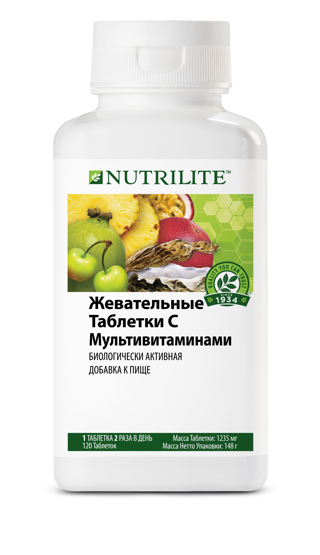 Жевательные мультивитамины NUTRILITE помогают взрослым нормализовать детский рацион. В каждой таблетке содержится 11 основных витаминов и минералов, укрепляющих организм. Они восполнят дефицит самых важных витаминов и минералов в рационе.