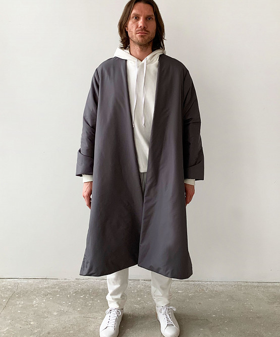 Объемные пуховики существовали и раньше. Но эта модель, напоминающая японское одеяние хаори, получилась по-настоящему агендерной — носить ее могут и мужчины, и женщины. Дополнять пуховик рекомендуем максимально минималистичными аксессуарами.