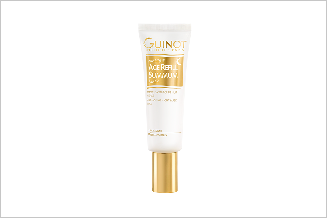 Еще одна новинка бренда – ночная омолаживающая маска-филлер Age Refill Summum Masque – разработана косметологами для ночной ревитализации возрастной кожи. В это время суток в глубоких слоях проходят процессы регенерации клеток и восполнения жизненных сил, мышцы лица полностью расслаблены, поэтому активные ингредиенты вечернего ухода лучше проникают в кожу и работают изнутри. С возрастом механизмы естественной регенерации кожи замедляются, поэтому в качестве ночных средств рекомендуется использовать «усиленные» версии – как например, ночная маска Guinot, обеспечивающая коже необходимую биоревитализацию под контролем циркадных ритмов кожи. Средство работает сразу в 4 направлениях: «инъекция» в кожу активных ингредиентов в высоких концентрациях, филлер-эффект, омолаживающее и биостимулирующее действие. Рекомендуется используйте курсом – 3 ночи подряд.