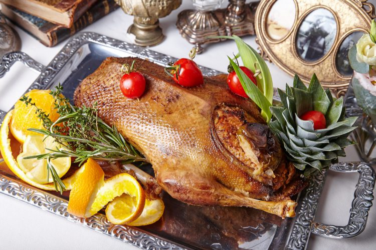 Специальное праздничное меню из исконно русских блюд доступно для заказа в ресторане «Царь»: молочный поросенок с гречневой кашей, гусь или утка, фаршированные яблоками и тушеной капустой, стерлядь, фаршированная муссом из копченой форели, кулебяка с палтусом и лососем ‒ эти и другие блюда доступны для предзаказа за двое суток. В новогоднем разделе также представлены традиционные салаты (оливье, сельд под шубой, мимоза и др.), мясной студень, пельмени и вареники ручной лепки в виде полуфабрикатом.