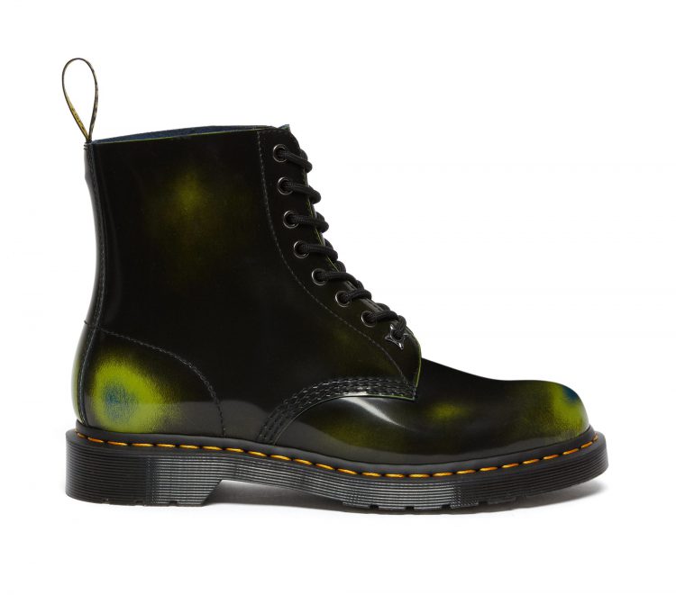 Модель 1461 Quad ‒ еще выше. Подошва, использующаяся в ней, достигает 1,5 дюйма (3,81 см), а корпус отделан кожей цвета Black Smooth и усилен желтой строчкой.