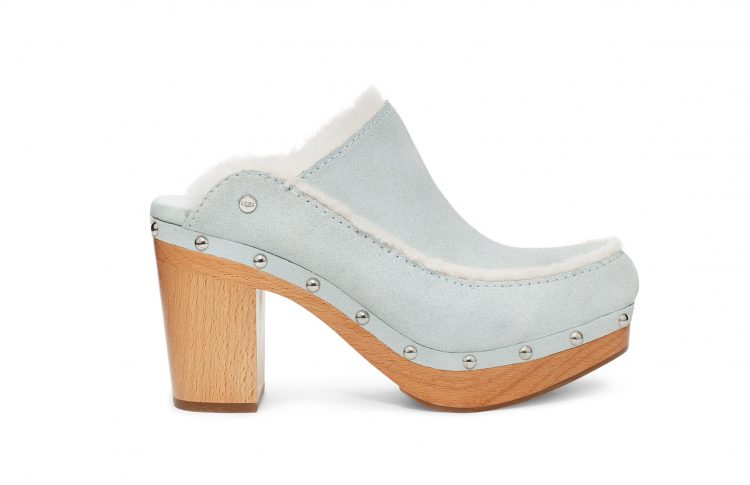 Традиционные сабо на деревянной подошве. Верх ‒ из замши и овечьей кожи с пушистой отделкой швов.